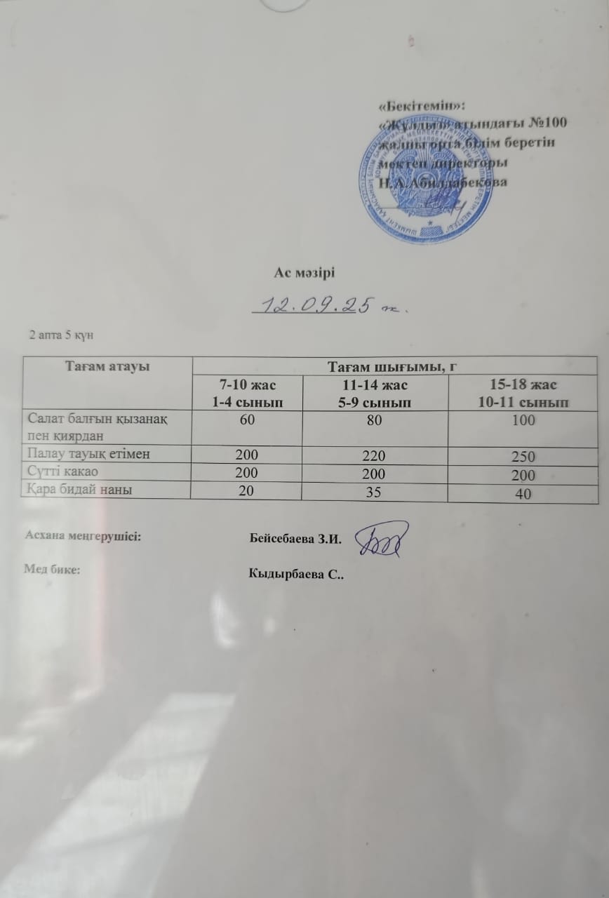 Ыстық тамақ құжаттары 2025-2026 оқу